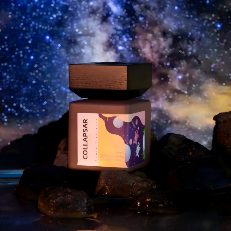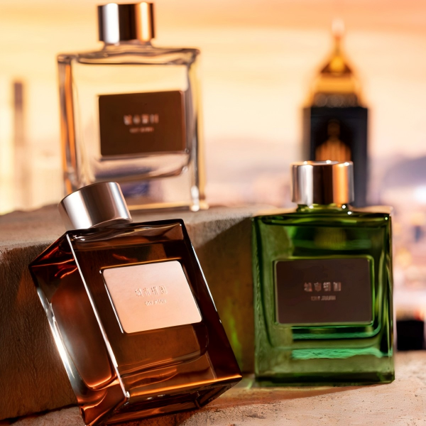 - A Late Traveler: Amber-hued vessel — pink pepper, lemon, orange blossom oil bloom into rum, happy sage, vetiver; rest on tobacco, vanilla, benzoin. A traveler returning at dusk — smoky, sweet, nostalgically free.